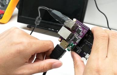 First, a multimedia extension module is inserted on the CrazyPi development board. Find a HDMI signal cable, HDMI, display, and USB general keyboard, and connect CrazyPi to the HDMI display. After CrazyPi is connected to the power supply, displays the command line operating interface on the HDMI display. The user can configure the WiF through the Linux command line operation. Let CrazyPi connect to the Internet.