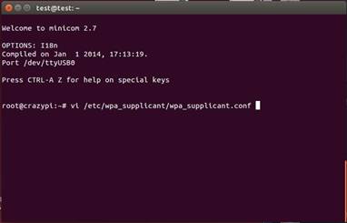 Step4--Input linux instruction: vi /etc/wpa_suplicant/wpa_suplicant.conf